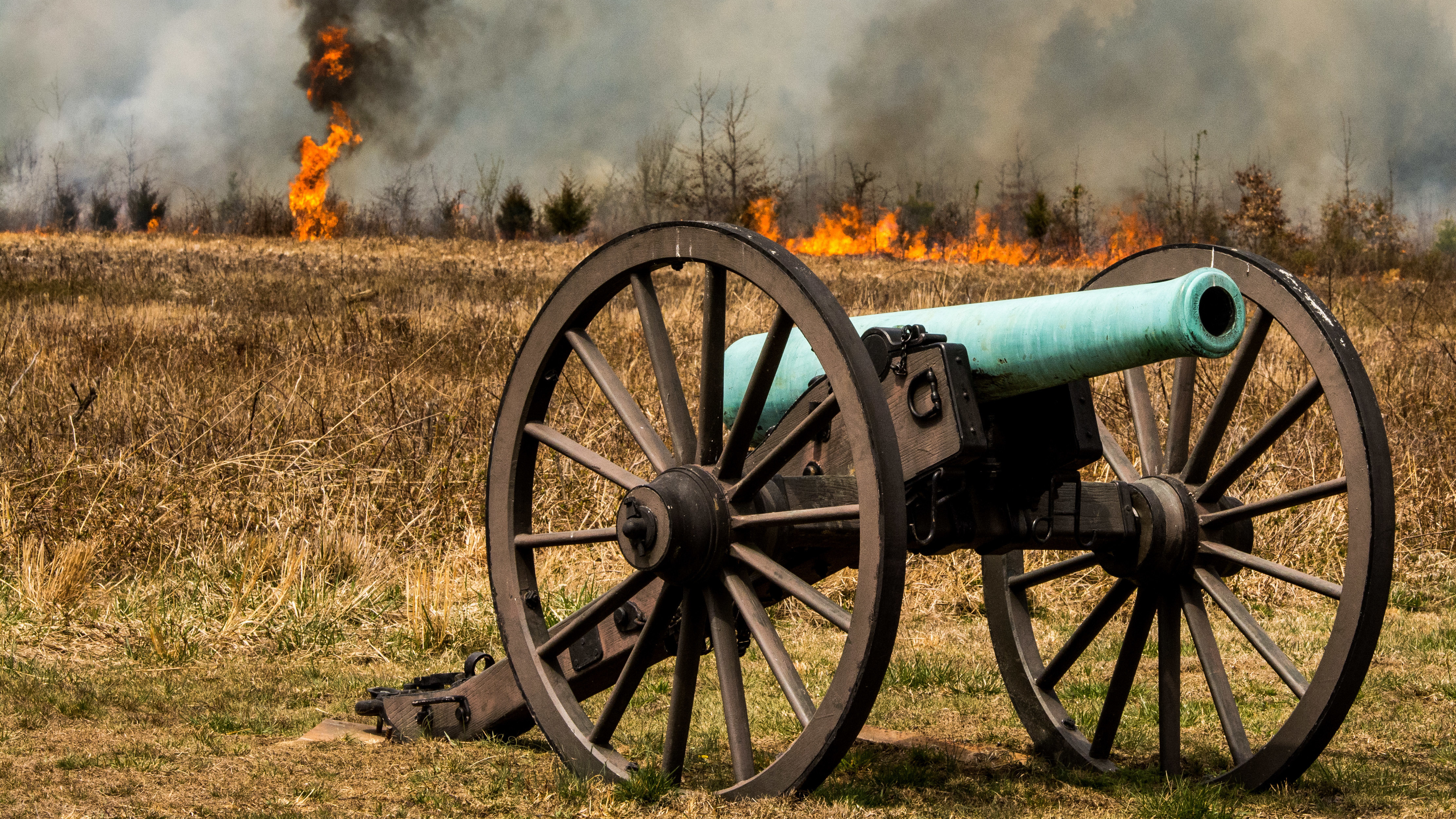 Smoke rose above planned maneuvers to defeat overgrown vegetation, preserving the wartime feel of the park where thousands of soldiers fought in 1862.